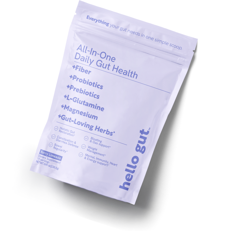 We designed Hello Gut to be the world’s most effective and comprehensive gut blend. We don't believe in supporting one aspect of the gut, we believe in supporting the WHOLE GUT. Formulated by some of the world’s most respected gut health experts, Hello Gut is comprised of the perfect amount of fiber, probiotics, prebiotics, anti-bloat herbs and gut-healing ingredients. These ingredients work together synergistically to strengthen your whole gut and support bloating, bowel regularity, digestion, immunity, cognitive function & much more.